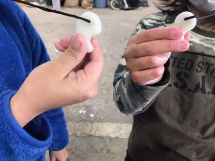 削って削って、最後に磨いてツルツルのきれいな勾玉ができあがりました!!