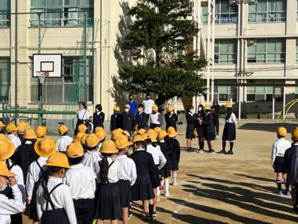 本日の朝会では、校長の挨拶のあと、広島へ修学旅行に行く6年生へ、5年生の代表から千羽鶴を手渡すセレモニーを行いました。平和の願いが込められた、今津の千羽鶴をしっかりと届けてきてもらいたいと思います。
