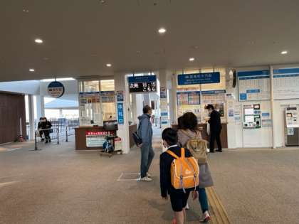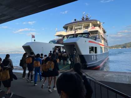 宮島口のフェリー乗り場です。ここから乗船して宮島へ渡ります。航行時間は、わずか10分程です。