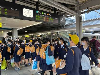 広島駅に着きました。これからお昼ごはんのお好み焼きを食べに駅近くのビルへと進みます。