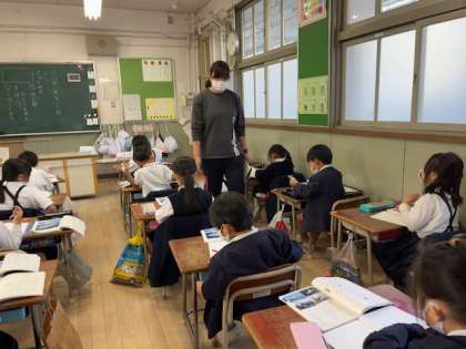 1年生は「いろいろなふね」という説明文の学習をしています。漁船やフェリーなどいくつかの船について、役目、つくり、できることが整理して書かれていることを学びました。