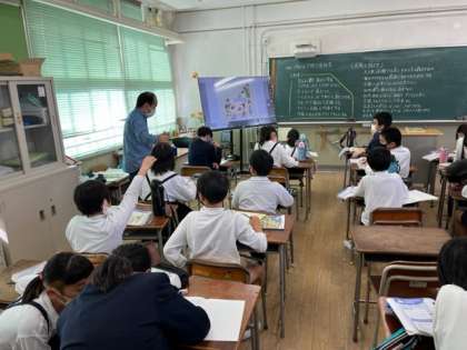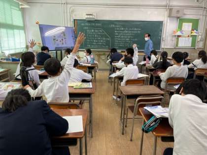 理科室で実験を行うときに注意する点を、教科書に書かれたイラストから、「間違い探し」のクイズ形式でみんなで確認をしていきました。