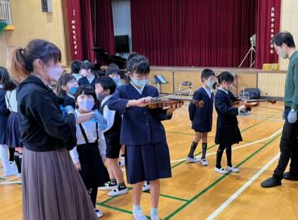 サロンオーケストラジャパンの皆さんによる音楽鑑賞会も本日が最終日です。3,4年生は素敵な演奏を聴かせてもらったのはもちろん、指揮棒をもたせてもらったり、バイオリンをさわらせてもらったりという体験もしました。今回のことをきっかけに音楽演奏に目覚めたという児童もいるかもしれません。あらためてサロンオーケストラジャパンの皆さんに御礼の気持ちをお伝えしたいと思います。