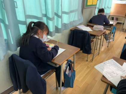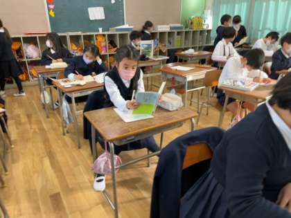 冬休みに自分が読んだ本や自分のお気に入りの本を、紹介カードに書くという取組みをしました。ほかの人にその本の良さを伝えることは簡単なことではありませんが、言葉を尽くして書きこんでいる様子が見られました。