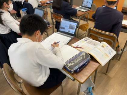 地場産業についての学習です。堺市では包丁づくりがさかんです。そのことについて調べた内容を新聞のかたちにまとめていきました。