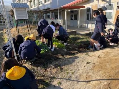 本日の委員会活動の様子です。図書委員会は節分にちなんだ図書室の掲示物づくりに取り組みました。運動委員会は体育倉庫の道具整理をしてくれました。栽培委員会は植えているダイコンの畑の雑草引きを行いました。