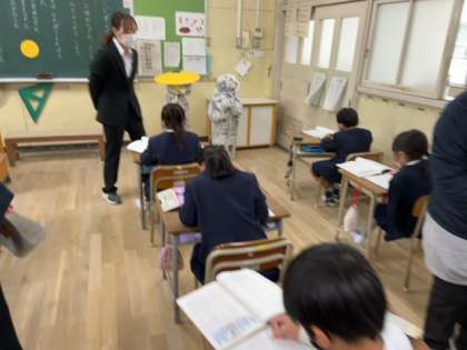 昔話の「かさこじぞう」を読み、登場人物の気持ちを読み取る学習をしました。本授業は、校内の研究授業として、他学年の教員も授業視察を行い相互啓発をはかりました。
