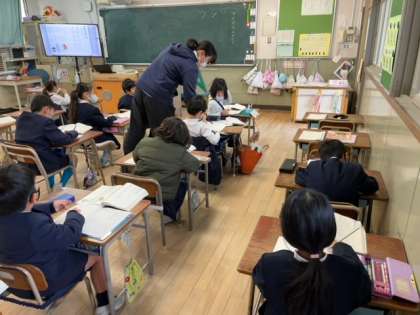 カタカナのかたちによく似たひらがな、カタカナとうしでかたちが似ている文字について学習しました。「ツ」と「シ」の違いなどを書き方も含めて確認しました。