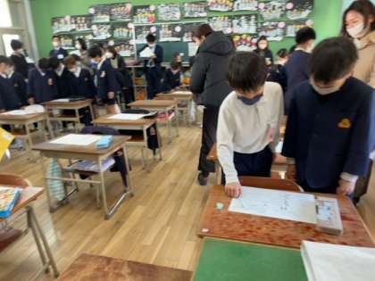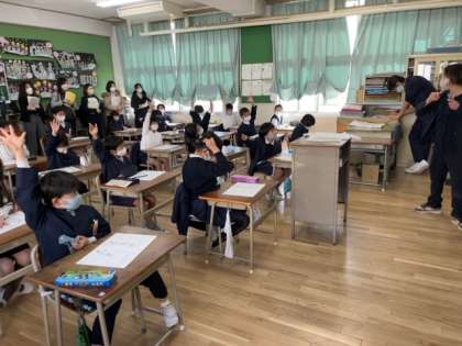 児童の成長にともない、身体的な接触についての思い、受け止め方が変化していきます。ふれあいの感じ方について学級で意見を出し合い、それをもとに養護教諭から保健指導を行いました。この取組みは大阪市教育委員会と連携しながら進めていることから、他校の養護教諭の先生が多数、授業視察に来校しました。