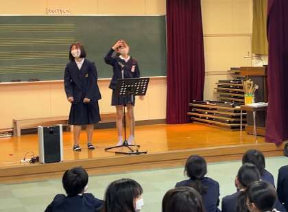 4時間目は多目的室に移動して実際にみんなの前で漫才を披露しました。どのグループも一生懸命さが伝わってきて、その姿がほほえましく感じました。もちろん、会場はたくさんの笑いにもつつまれました。