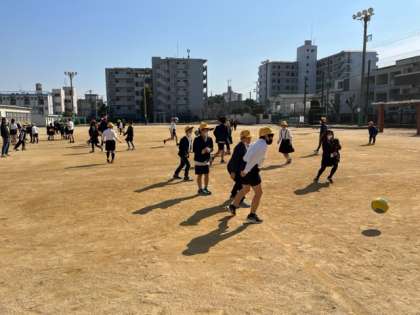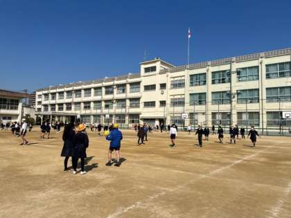 3月になりました。休み時間、あたたかな陽ざしのもと、子どもたちは元気いっぱいに校庭で身体を動かしています。