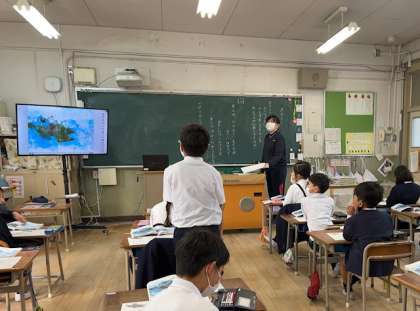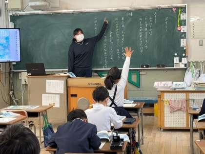 1年生はいま「スイミー」を学習しています。「おなかをすかせたまぐろ」の描写など言葉や文章表現について、ひとつずつ丁寧に確認し、読み進めていきました。