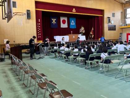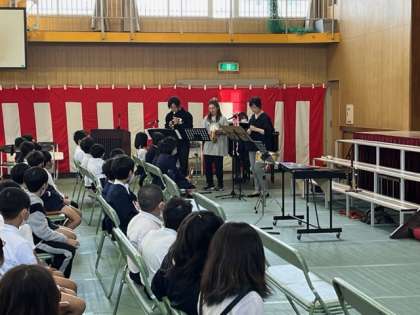 先日、リコーダーの演奏会を頑張った3年生へのお返しに、先生から演奏のプレゼントをしました。最後には6年生の先生も参加してにぎやかな演奏になりました。子どもたちは楽しんでくれたようです。