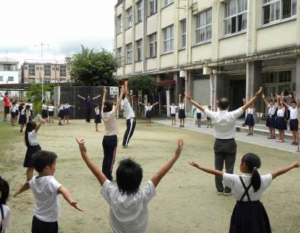 1学期は月曜日だけのラジオ体操でしたが、2学期からは毎日、1時間目の休憩時間にラジオ体操を行っています。