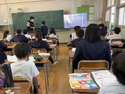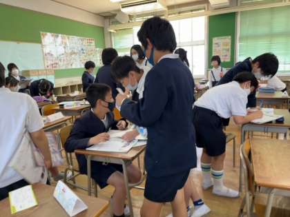 日付の英語表現を学んだうえで、友だちと誕生日について質問、回答する会話をしました。みんなしっかりと友だちの誕生日を英語で伝えることができていました。