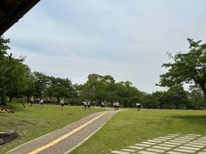 暑さもあり、行程を変更し、東大寺を後にしてお弁当タイムです。友だちと一緒にシートを広げ、美味しいお弁当を食べます。保護者の皆様、朝早くからお弁当をご準備いただき、ありがとうございました!食べ終わると、それぞれ休憩したり、園地内を散策して鹿を探したりしながら、過ごしていました。