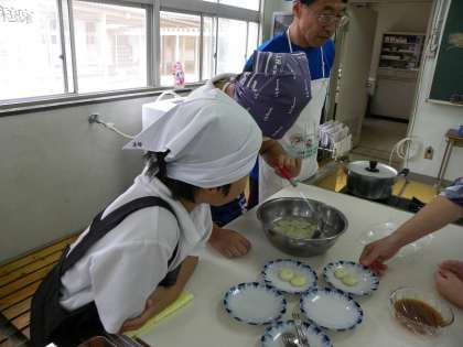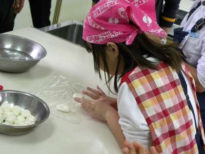みんなでおだんごを丸め、沸騰したお湯の中でゆで「みたらしだんご」にして食べました。