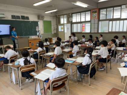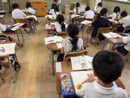 ヤマアラシやスカンクなどの動物がどうやって身を守るのかについて書かれた説明文の学習です。文章の内容をみんなで確認したうえで、感想文を書いていきました。