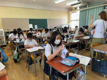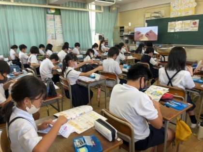5年生の家庭科の授業の様子です。裁縫に取り組みました。ひと針、ひと針と丁寧に縫いを進めていきます。