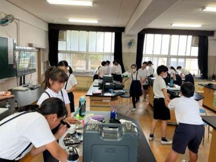 塩や砂糖、植物の種や葉などを顕微鏡で観察しました。次から次へと自分が興味を覚えたものを顕微鏡のステージの上にのせていました。