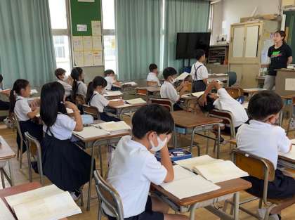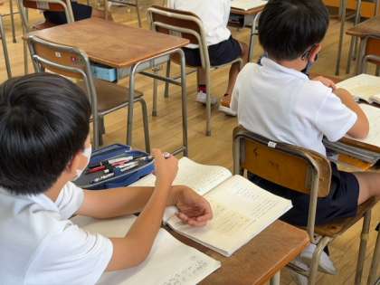 「道草を食う」「ねこのひたい」「雲をつかむ」といった慣用句について、その意味を学んだうえで、日常でその言葉を使う例を考えました。