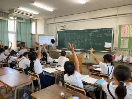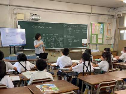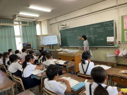 1学期の算数の復習をしました。三角定規を合わせた時の角度の計算をしたり、表の穴埋めの数値を計算しながら求めました。
