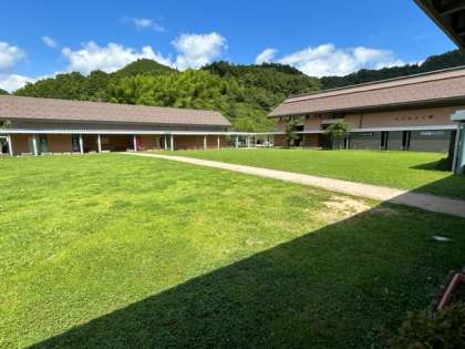 バスは2回目のトイレ休憩の場所、道の駅まほろばに到着しました。よい天気です。大阪市内の小学校が5校ほど、一緒でした。眠そうな表情の子もいますが、元気にすごしています。