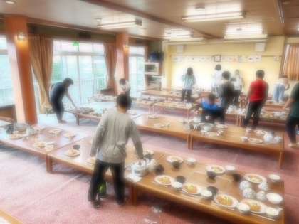 2日目夕食の時間です。食事係の手際がよく、準備が早くなりました。素晴らしい!!子どもたちは、しっかり食べています。無理はさせられませんが、自分たちで食べる量を調整しているようです。エネルギーをためて、残りの活動もがんばっていきましょう!