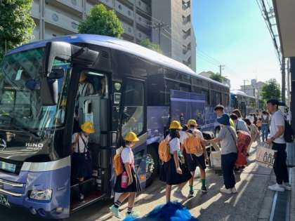 ただいま、子どもたちを乗せたバスが配車場所に帰着しました。