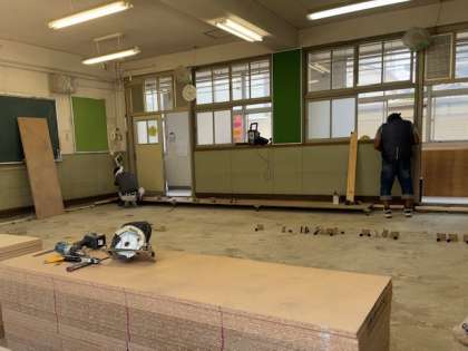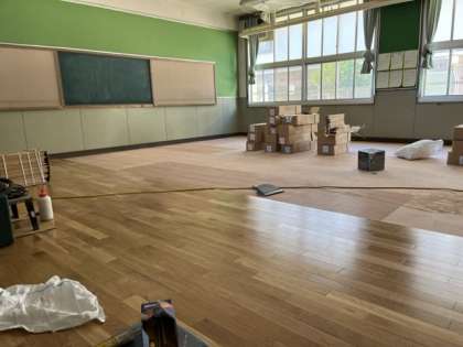 数日をかけて、いくつかの教室の床板の張替え作業を行ってもらいました。夏休み明けに子どもたちに気持ちよく教室を使ってもらえるものと思います。