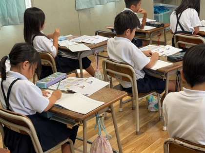 数をかぞえるにあたって、2つずつ、5つずつ、まとめることで早く数えることができることを学びました。1年生もしっかりと学校生活のペースを取り戻しつつある様子です。