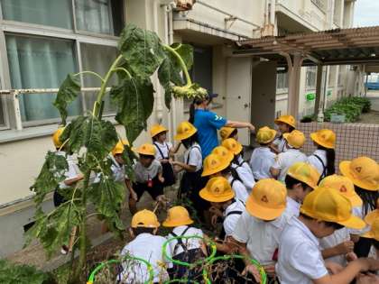 ひまわり、ほうせんか、といった草花から種を取り出して観察しました。「おうちに持って帰って植えたい」という子どもたちの声が聞かれました。植物にいっそう関心をもってもらえるとうれしいです。