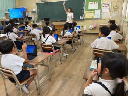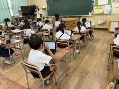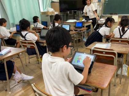 タブレットPCを使って、文字の入力方法、teamsを使ってのオンライン学習のやり方、色々なソフトの使用方法などを先生から教わりました。楽しそうに取り組む姿が見られました。