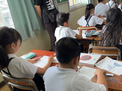 毎週火曜日の朝は全学年「算数タイム」です。4年生の2教室でも子どもたちが熱心に計算問題に取り組んでいました。習慣化することで算数好きの児童が増えることを願っています。