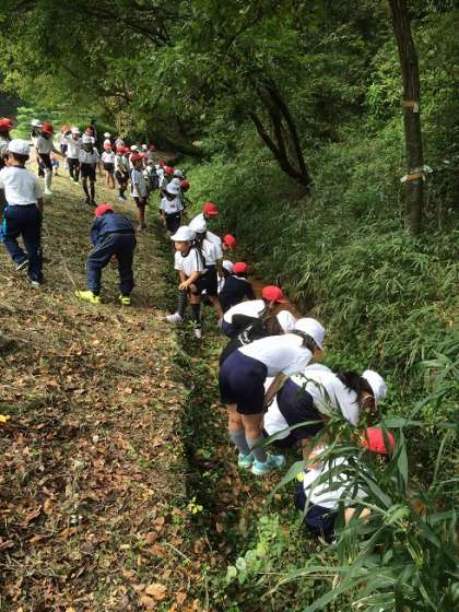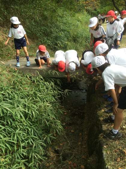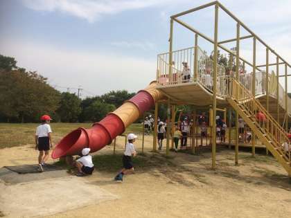 よい天気に恵まれ、2年生は山田池公園へ遠足に行きました。公園で大きな遊具で遊んだり、草むらではたくさんの虫を見つけ虫とりをしたり、水辺ではザリガニを見つけたりして楽しみました。