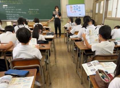 自然災害が起こったら、だれがどのような活動をするのか、自治体の体制を図で見ながら確認をしていきました。たくさんの人や組織に支えられていることがわかったものと思います。