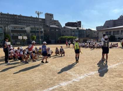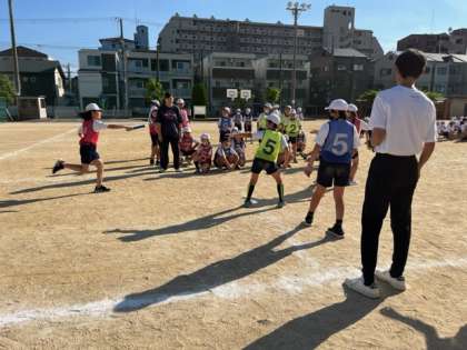 運動会では5年生、6年生はリレー競技を行います。本番に向けて、バトンの受け渡しを中心に練習を行いました。友だちを応援する声が校庭に響きます。