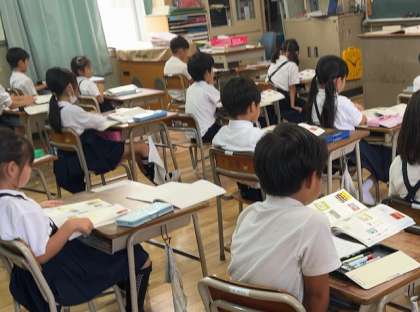 「読んだことがある本」と「これから読みたい本」を先生からたずねられました。学校の図書室にはたくさんの本があります。1年生から色々な本に触れてもらいたいものです。