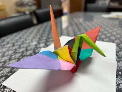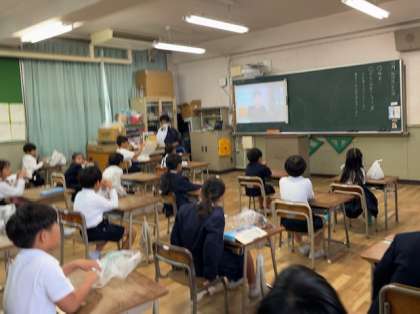 本日の朝会では、校内オンラインを使って、校長から「千羽鶴」を折る意味を児童に話しました。広島で被爆した少女が折り鶴を作り続けたエピソードを伝え、平和への願いを込められた多くの千羽鶴が毎日届けられていることを紹介しました。