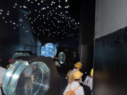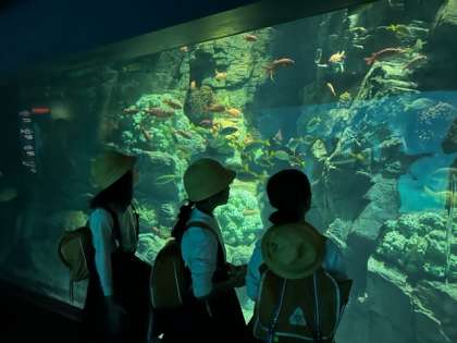 大水槽ではシンベエザメの大きさに驚き、熱帯魚やクラゲのコーナーではそのかわいらしさにいやされている様子でした。