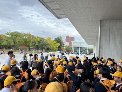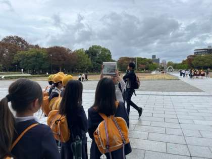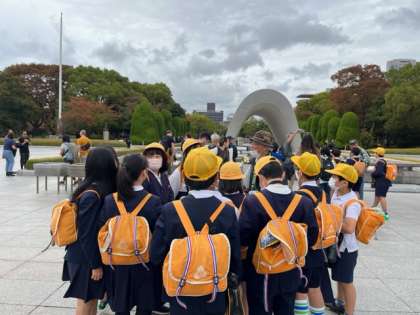 ボランティアガイドさんの案内で平和記念公園内をめぐり、慰霊碑や原爆の傷跡を残すモニュメントなどの説明を聴きました。平和への思いがいっそう強くなったものと思います。