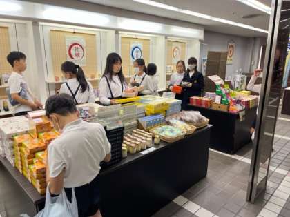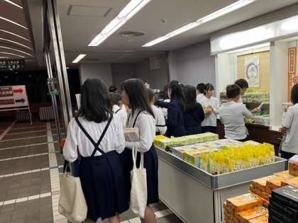 学級ごとにお風呂に入っている間に、並行してお土産を買う時間を設けています。どれにしようか迷いつつも楽し気にお土産を選んでいました。