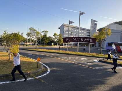 宿舎の「グリーンピアせとうち」に別れを告げて、バスはこれから姫路セントラルパークへ向かいます。