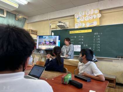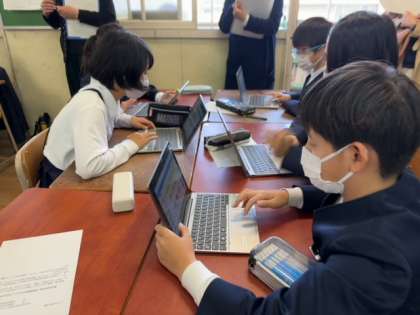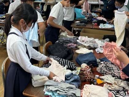 ユニクロ社が進めている「服のチカラプロジェクト」で回収した服を5年生が整理してくれています。大きさ、服のタイプなどで分けたり、その数を数えたり。集計した結果を各学年に報告するプレゼン資料づくりも行いました。