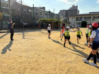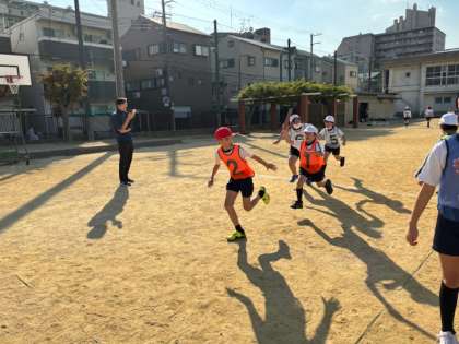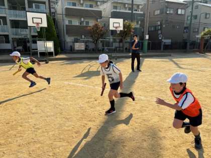 さわやかな青空のもと、4年生はリレーの練習を行いました。はじめはバトンをわたすタイミングが難しいようでしたが、それでも練習していくうちにうまくできるようになってきました。
