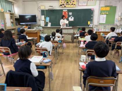 2年生の各学級にて歯科衛生士さんによる「はみがき教室」を実施しました。自分で磨けていると思っていても歯垢が残っていることを確認したうえで、正しくしっかりと歯を磨く方法を教えてもらいました。毎日の習慣にしてほしいと思います。