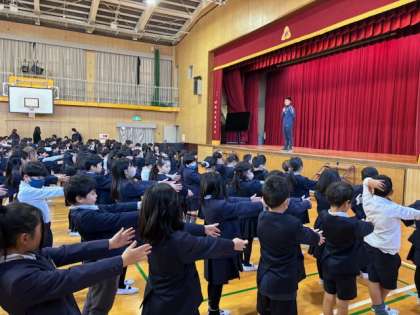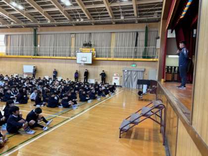今日の朝会は講堂で実施しました。校長からは前日の鶴見区子ども文化祭での4年生の活躍の様子を伝え、あわせて転入生の紹介、今月の生活目標などの確認も行いました。