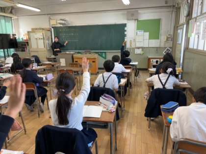 数直線を使って分母が4の分数を調べていきました。みんな積極的に授業に取り組んでいます。