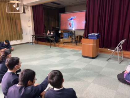 明日の終業式を前に、多くの学級では「お楽しみ会」を行いました。5年生の学級では多目的室を使って、自分たちがプログラミング学習で作成したゲームやPCで作成したアニメ仕立ての動画をグループごとに見せ合ったりして楽しい時間を過ごしました。