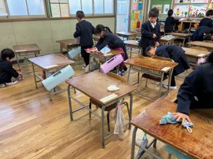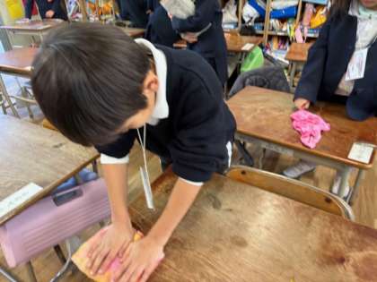 今日の5時間目は年末恒例の「大そうじ」です。1年生の教室でも、ぞうきんで色々なところの拭き掃除を行いました。みんな、自発的に掃除をしてくれていて、頼もしくも感じました。